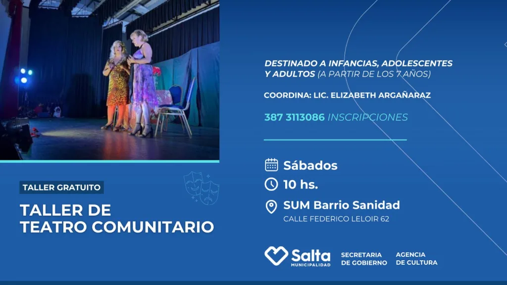 Se trata de una propuesta abierta a toda la comunidad para jugar, crear y expresarse a través del teatro. Es gratuito y destinado a niños, adolescentes y adultos. Se desarrollará los sábados a las 10 horas, en el SUM, ubicado en calle Leloir 62.