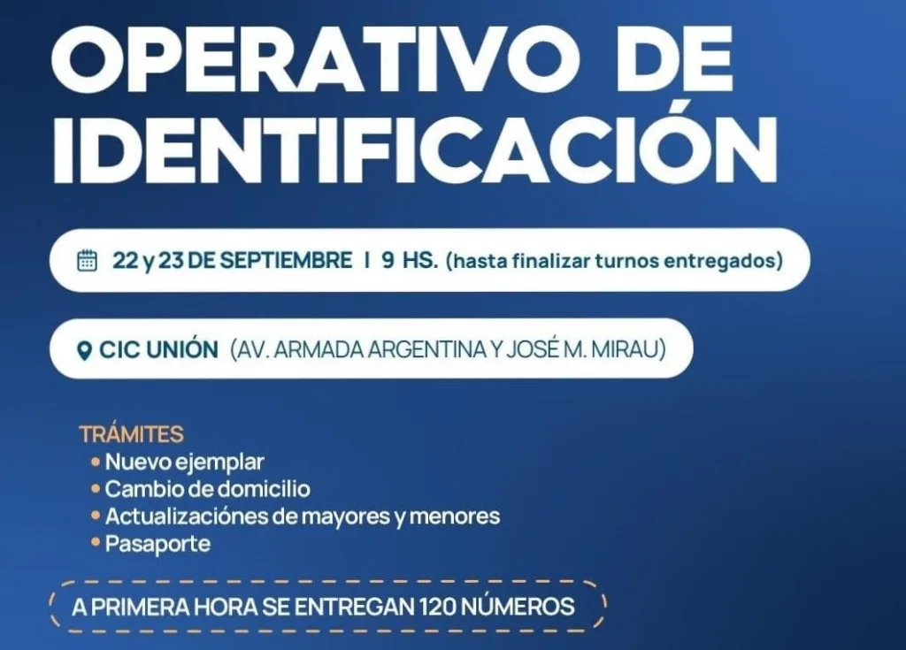 Los vecinos que necesiten realizar nuevos ejemplares del DNI, efectuar cambio de domicilio y otras gestiones, podrán hacerlo en el Centro Integrador Comunitario de zona norte. La fecha es el lunes 22 y martes 23. Más información en el nro: 3872266246.