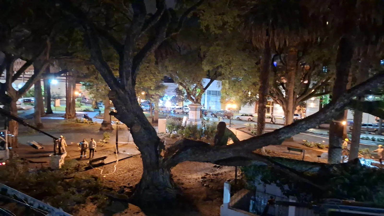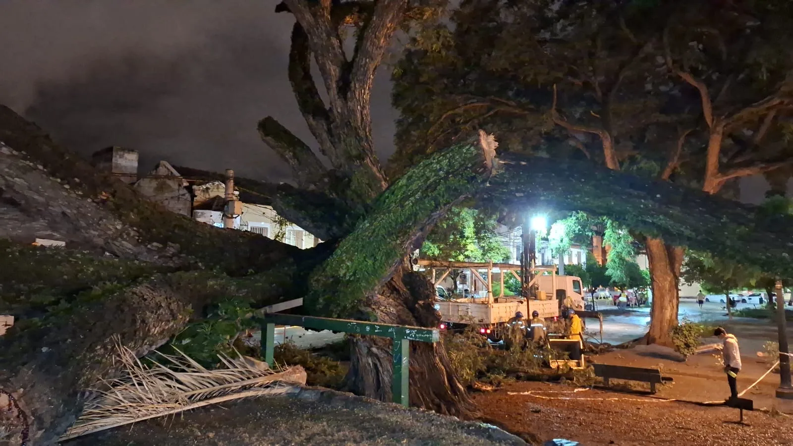 Personal municipal retiró un árbol de gran porte que había caído en plaza Belgrano