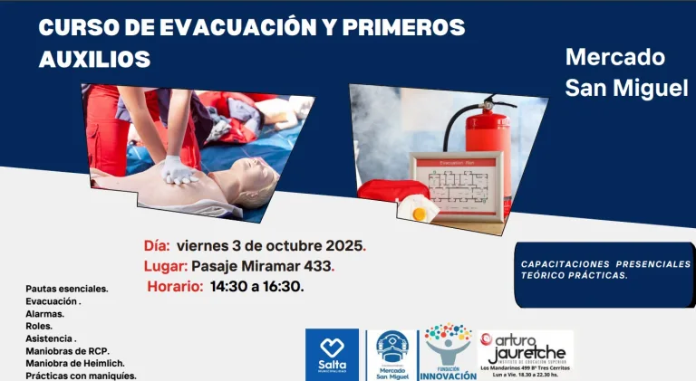Mañana, viernes 3 de octubre, se realizará un curso de evacuación y primeros auxilios destinado a puesteros y personal del Mercado San Miguel. Estará dictado por Analía Carrizo y Flavia Dib, ambas del Instituto Superior N°6.040 “Arturo Jaureche”.