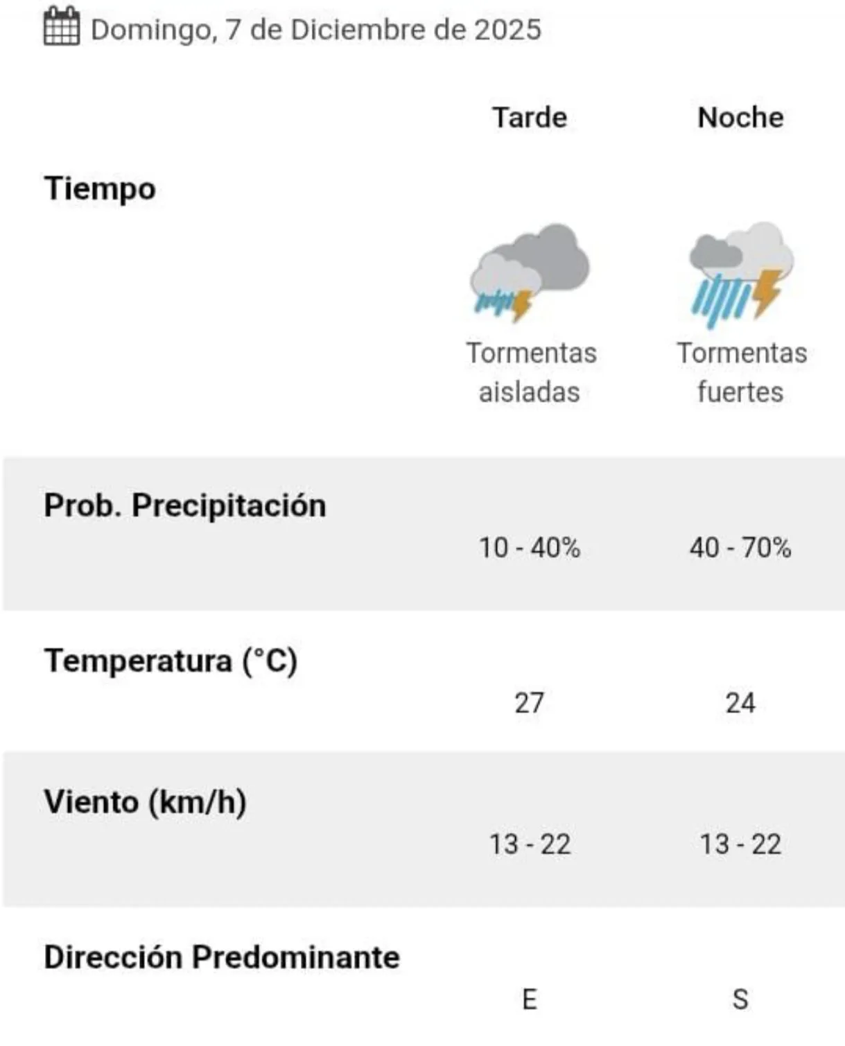 De acuerdo al pronóstico, emitido por el Servicio Meteorológico Nacional, se anticipa probabilidad de precipitaciones especialmente por la noche, con vientos moderados sin ráfagas y temperaturas agradables.