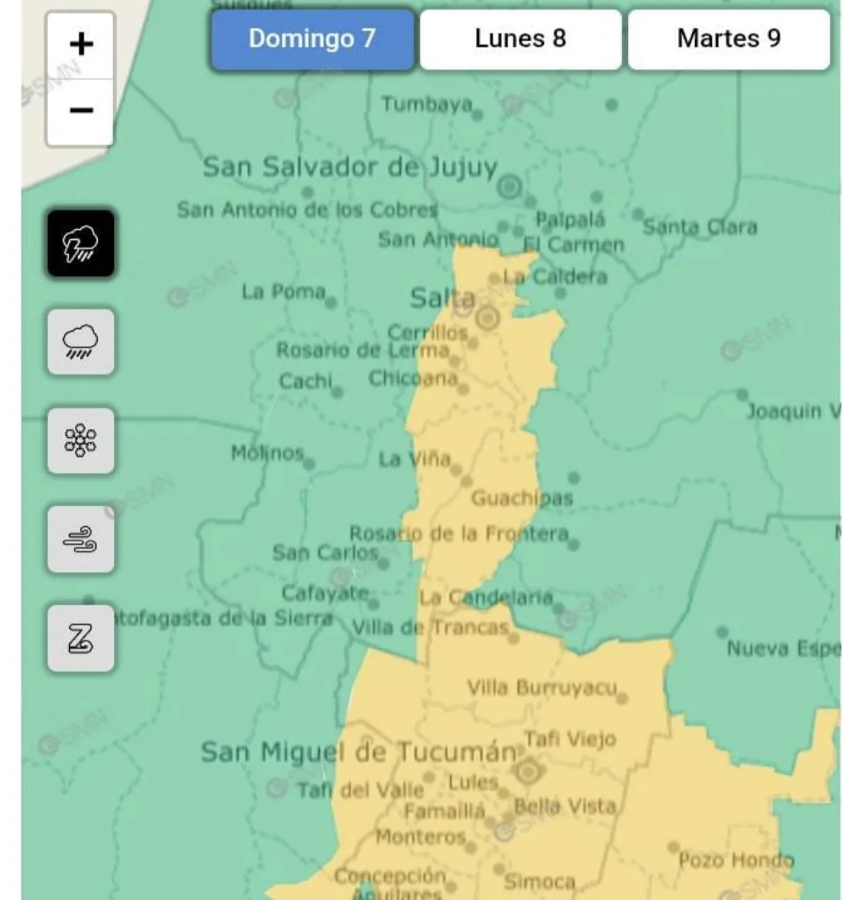 La Municipalidad de Salta informa que rige una alerta amarilla por tormentas fuertes para la tarde-noche de hoy, sobre el área central de la provincia.