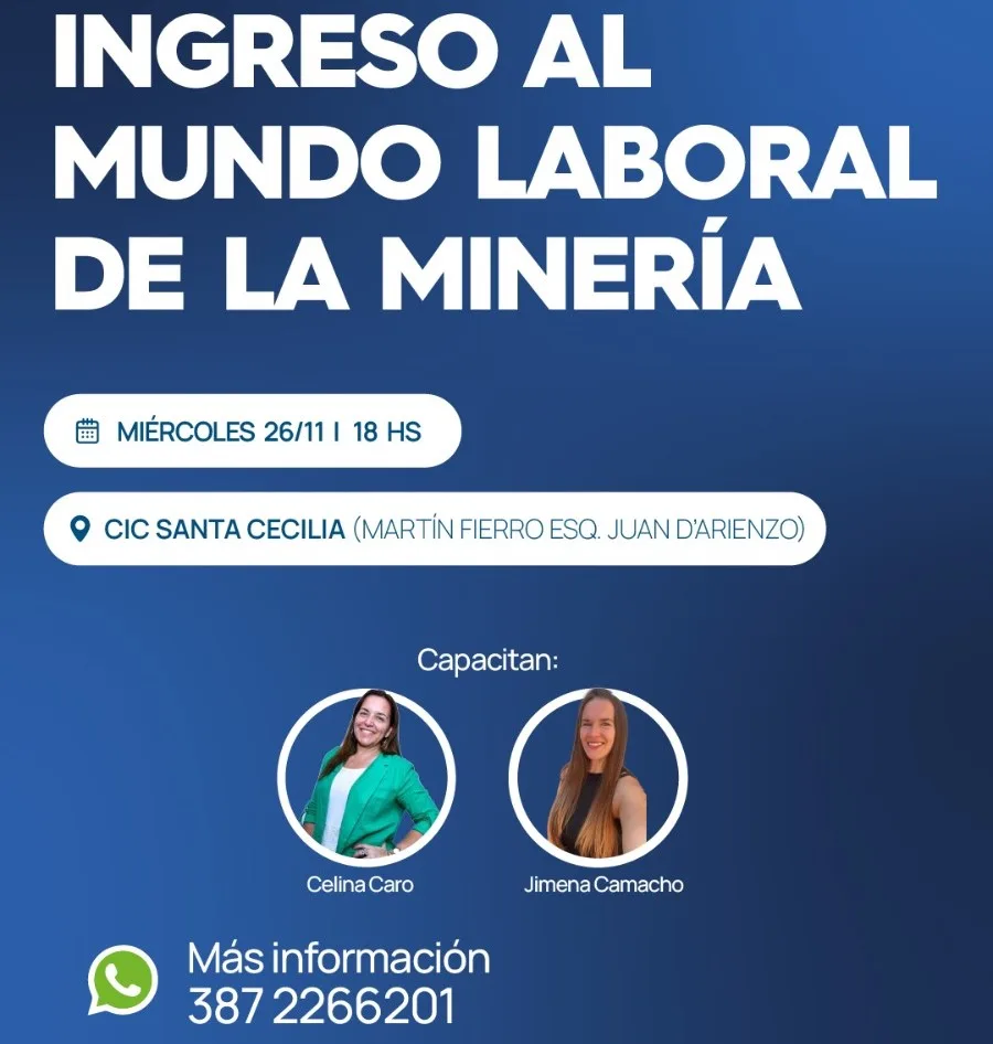Celina Caro y Jimena Camacho, brindarán a los vecinos herramientas concretas para ingresar al mundo laboral. En ese marco se dará información sobre la formación «Empleo +40», LinkedIn, Ingreso al mundo de la minería y mentorías laborales.