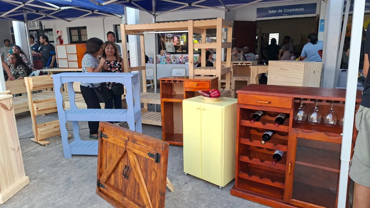 Durante la expo se presentaron producciones de talleres como marroquinería, carpintería, soldadura, pastelería, gastronomía, diseño, reparación de aire acondicionado, lavarropas, entre otros.