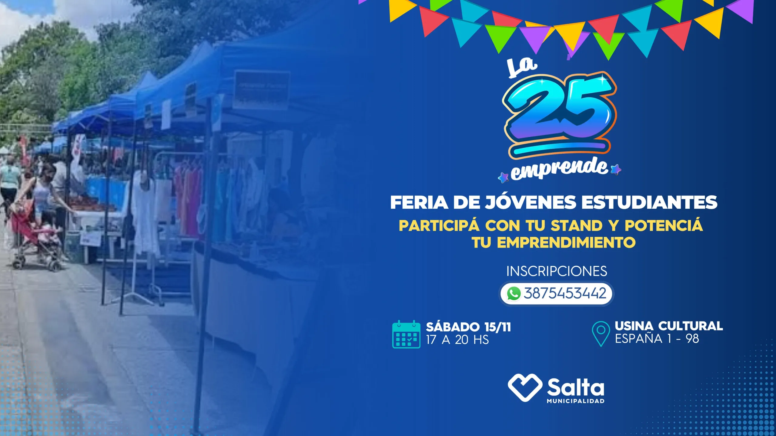 El encuentro será el sábado 15 de noviembre de 17 a 20 hs en la Usina Cultural. Los jóvenes estudiantes de 3º, 4º y 5º de colegios públicos y privados podrán participar exponiendo y vendiendo sus productos. Para inscribirse comunicarse al 3875453442.
