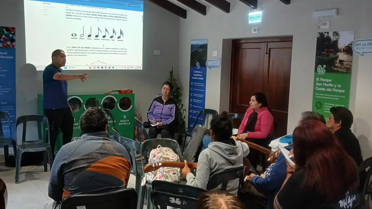 Los días jueves participan los alumnos de guitarra, mientras que los viernes asisten quienes aprenden ukelele y charango. El taller cuenta con cupo completo y continuará desarrollándose hasta diciembre de 2025.