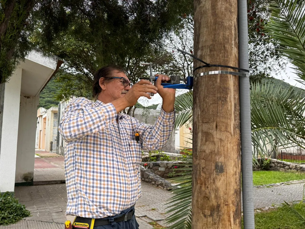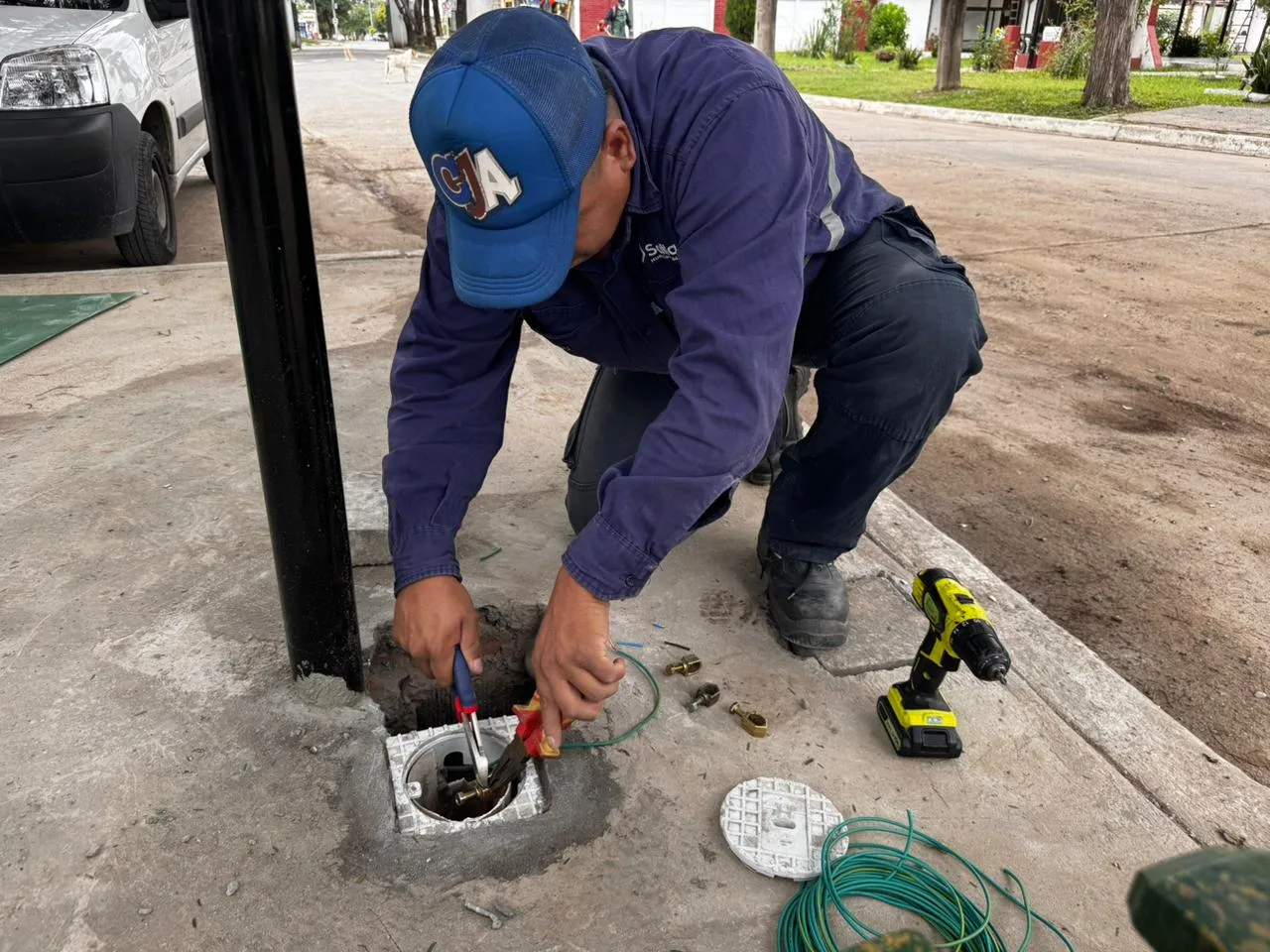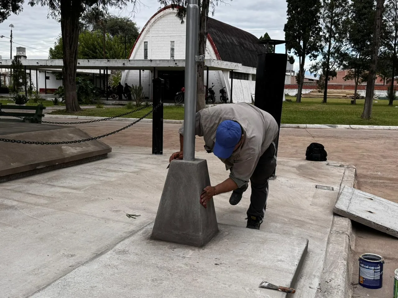 Los trabajos incluyeron la construcción del monolito con cadenas y llama votiva y la instalación de luces y mástiles.