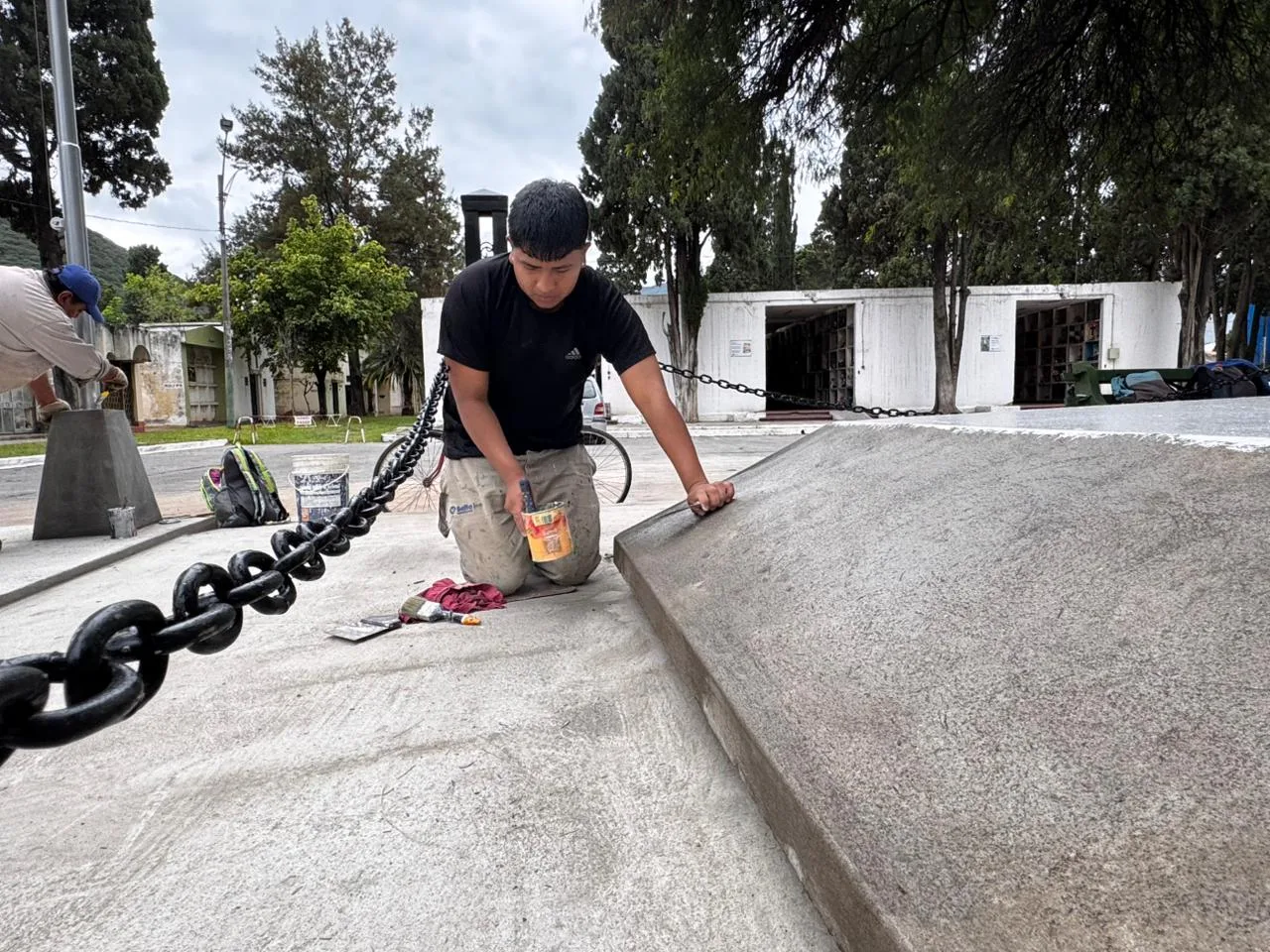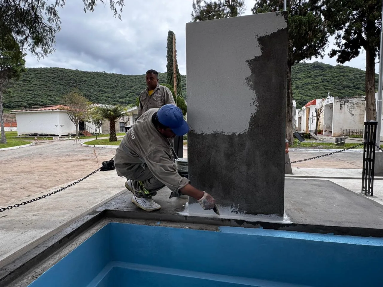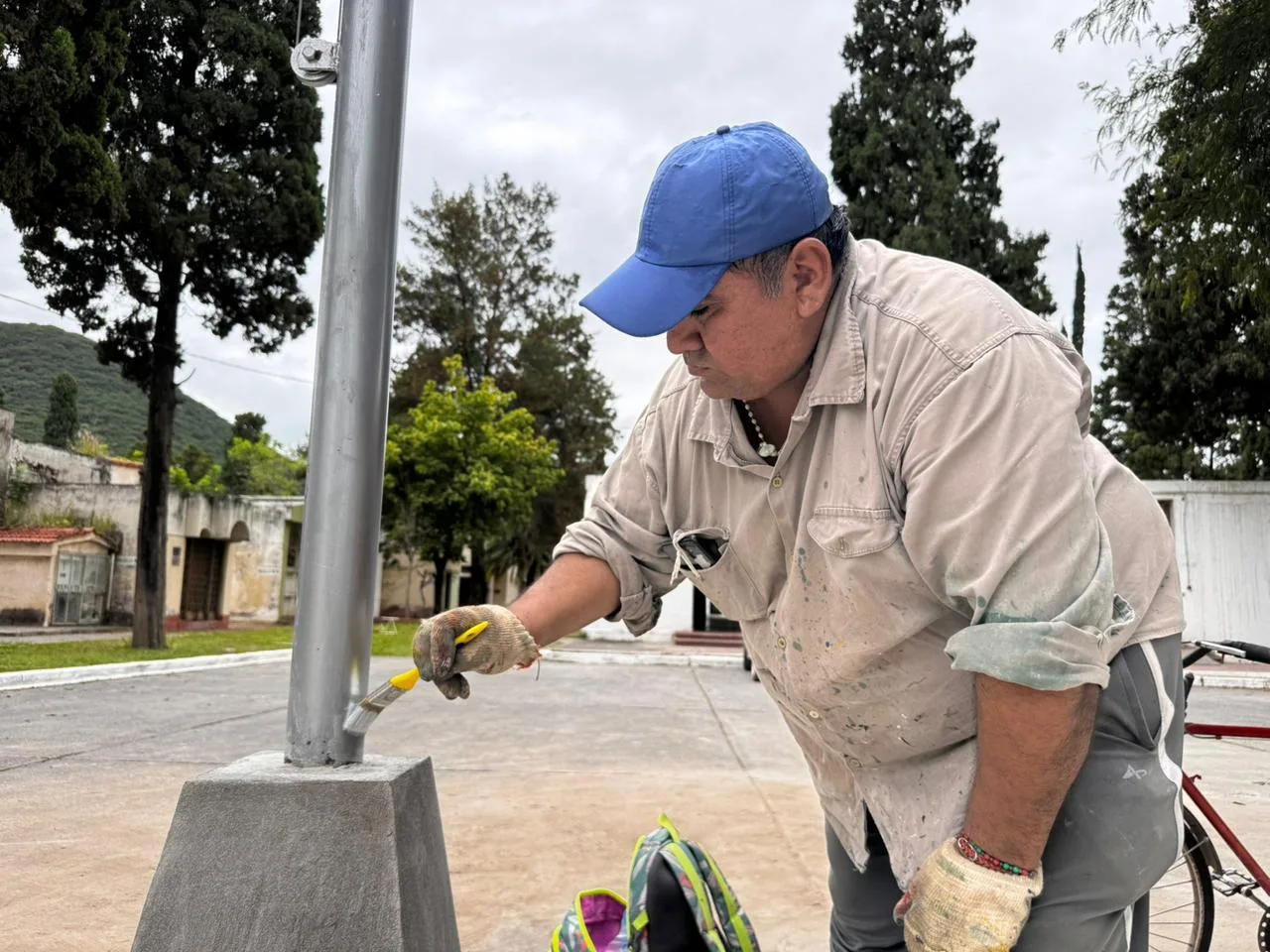 La Secretaría de Obras Públicas de la Municipalidad ultima detalles del monolito que construye en el ingreso al cementerio San Antonio de Padua, en homenaje a 3 salteños caídos durante la gesta de Malvinas.
