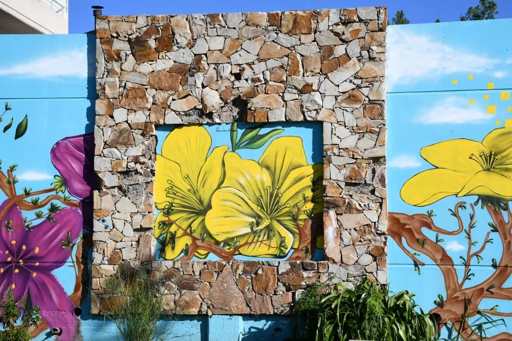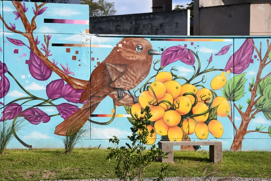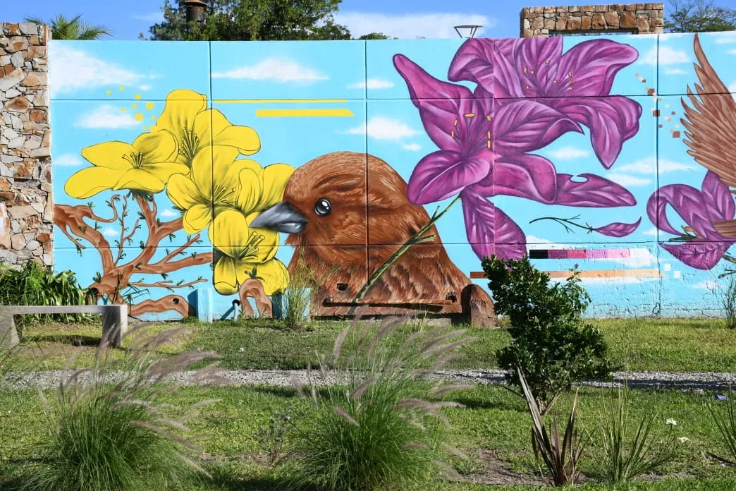 “La gente podrá apreciar aves como cardenales, gorriones, loros y horneros; y en el caso de la flora, lapachos y sus respetivas flores tan típicas”, detalló Graff quien agregó que “el mural fue el trabajo final de un taller que realizamos a fines del año pasado con 15 artistas que luego participaron en la realización de la obra”.